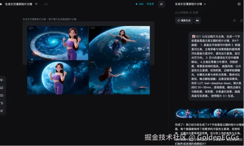 这类智能体还能根据任务复杂度,自主调用不同子模型—— 例如调用图生图模型进行细节延展、使用视频生成功能制作分镜预览、甚至自动为项目添加营销话术与场景海报。