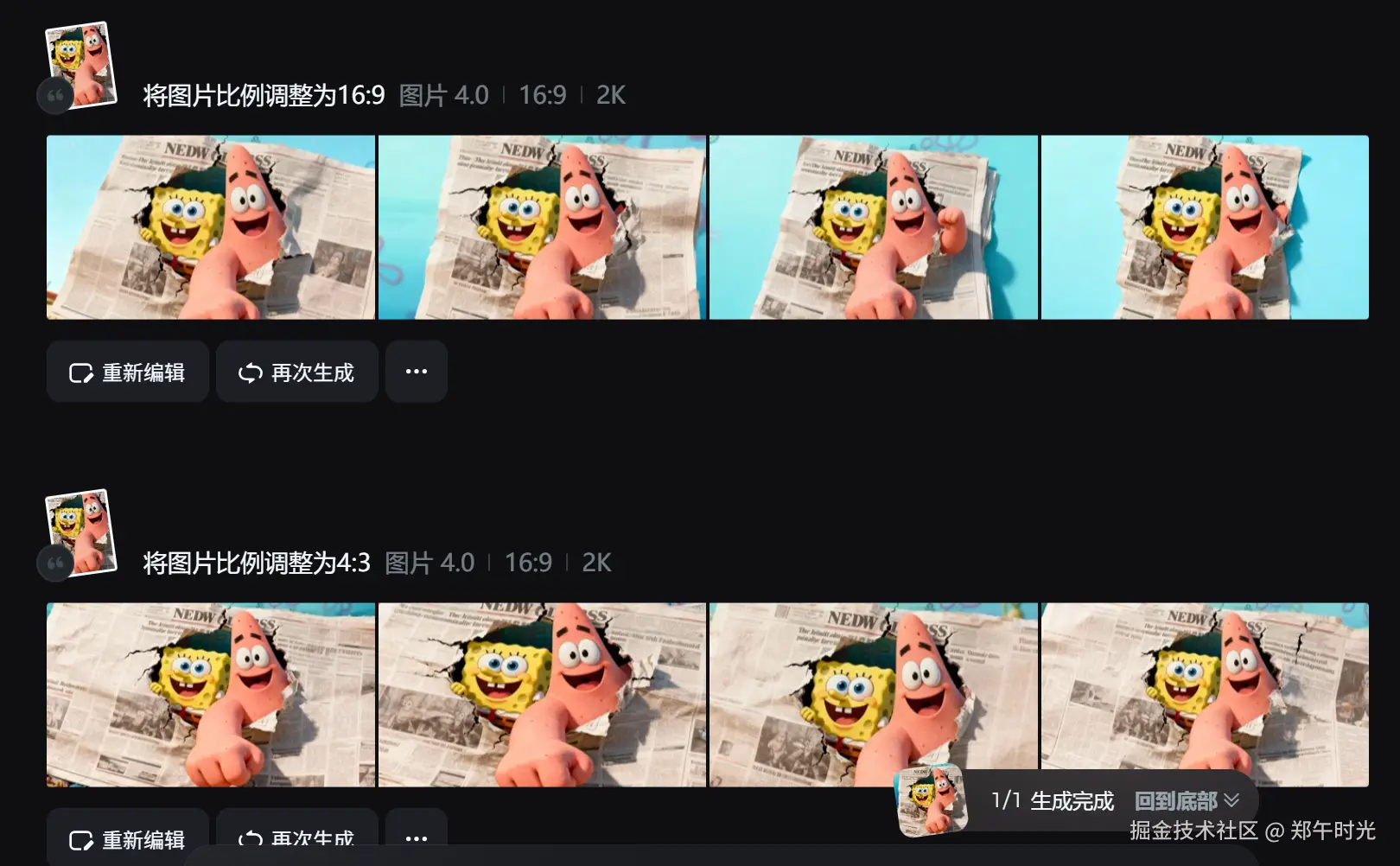 生成的图可以一句话“将画面比例调整为xxx”直接导出为多种比例,