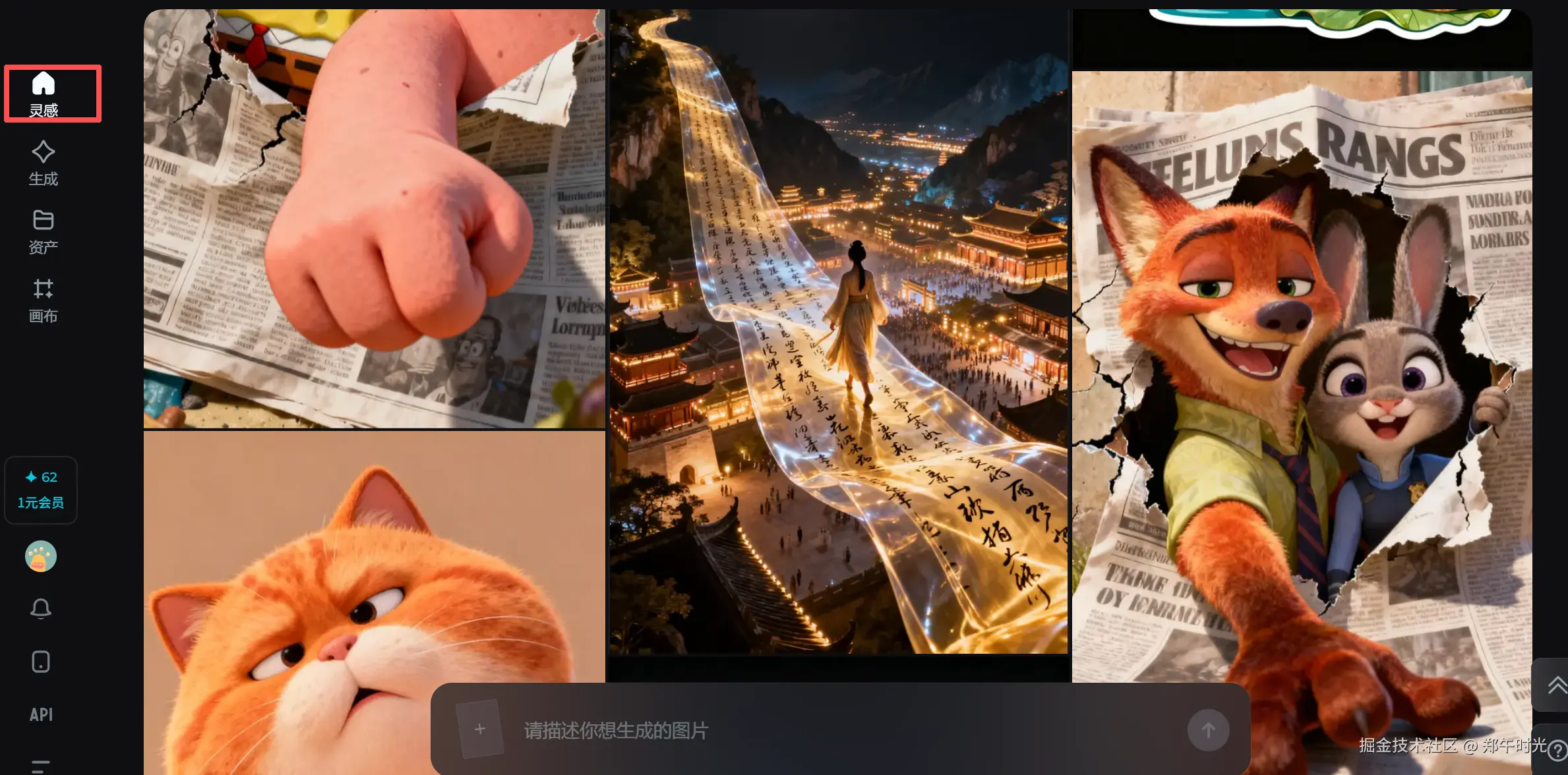 这点太香了。 即梦每天会送66个免费积分(相当于66次出图机会)。每出一张图才消耗1个积分,对我们普通人来说完全够用! 新用户注册还有额外礼包。 如果你只是日常做海报、产品图、社交配图, 这点积分完全够用,根本不用花钱!
