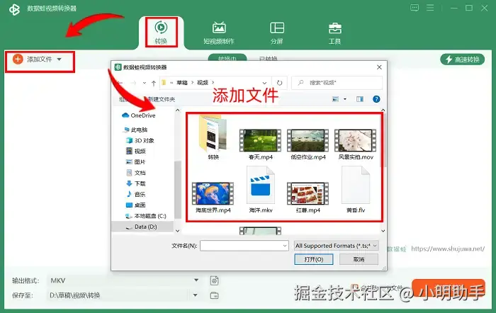 步骤1: 打开数据 蛙视频转换器后,在左上角的【添加文件】处上传文件。