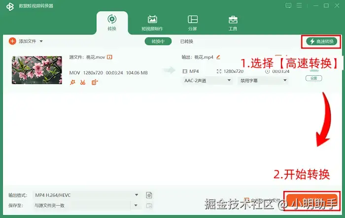 步骤3: 使用【高速转换】功能可以快速实现转换格式,最后只需点击【全部转换】按钮即可。