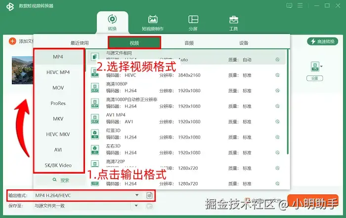 步骤2: 点击【输出格式】,在新页面中选择合适的格式。