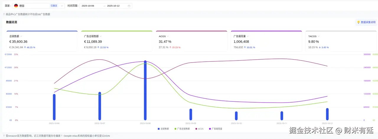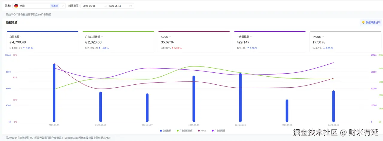 看着步骤简单,人工落地全是坑:长尾词根本没精力一个个挖,潜在好词全漏;每天只能看1次数据,调价慢半拍,竞品一发力就丢流量;按梯队建广告组要耗几小时,最后只能乱堆,优质词被废词拖垮。4月初数据就是教训——销售额才6k+欧元,ACOS却飙到33%,明明知道方法,就是干不动。