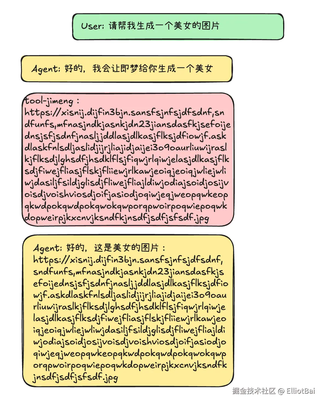 也就是说,如果用户今天生成了一张图片,明天再打开这个 Agent 对话,历史消息里的 URL 已经失效了,模型看到也没用。