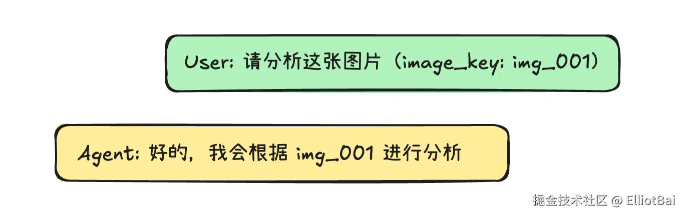 历史消息里只需要记录"这是一张图片,它的 key 是 img_001",而不需要关心它的具体内容、存储位置、访问方式。