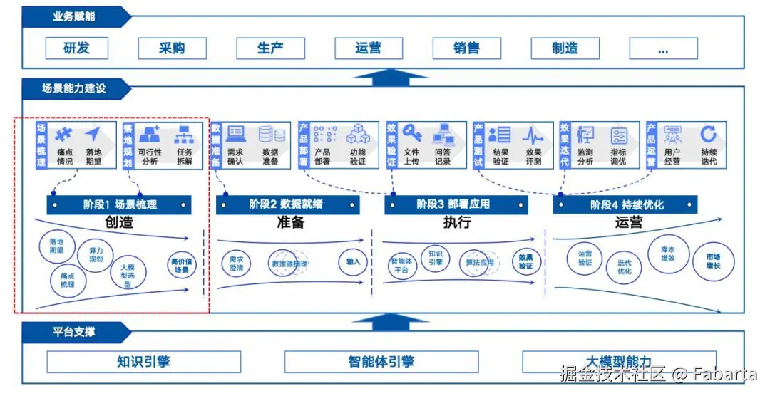 1.业务价值是目标,所有的落地都是为业务服务的;在高价值场景挖掘中,就要挖掘和发现高价值的场景,进而让大模型在高价值场景下发挥作用,具备高的业务价值;
