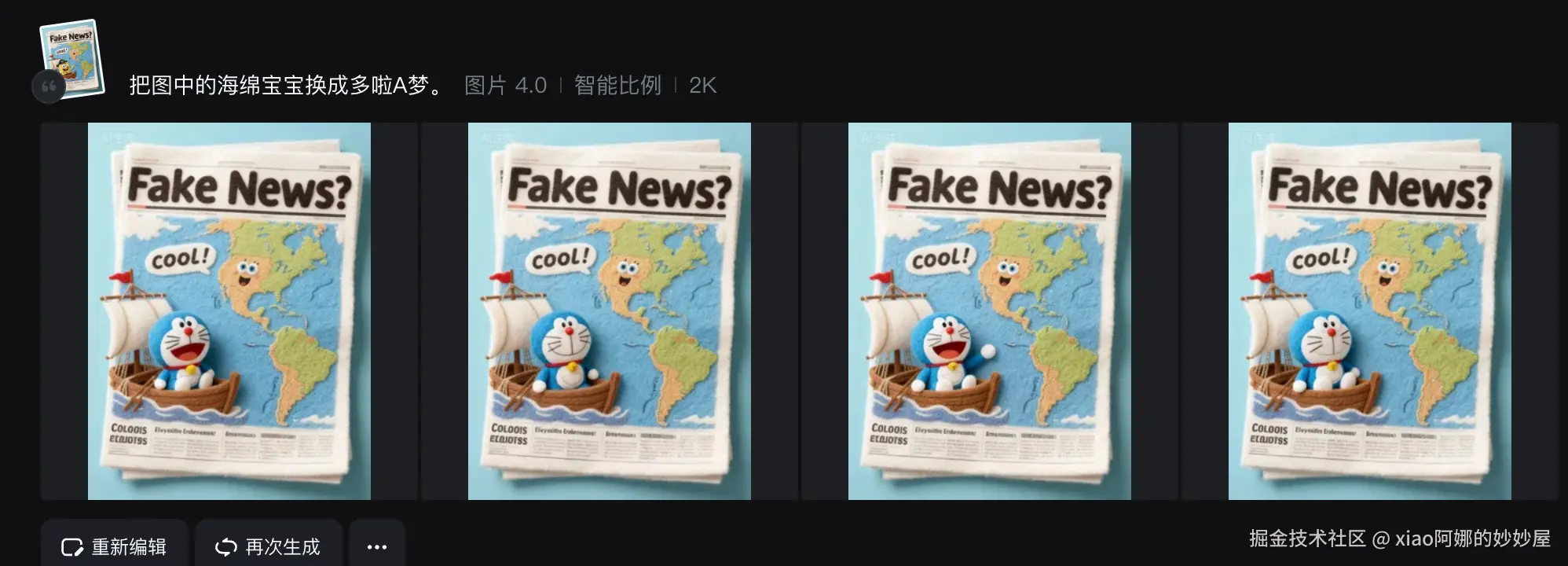 输入指令:“把主体‘海绵宝宝’替换成‘多啦A梦’。” (9)