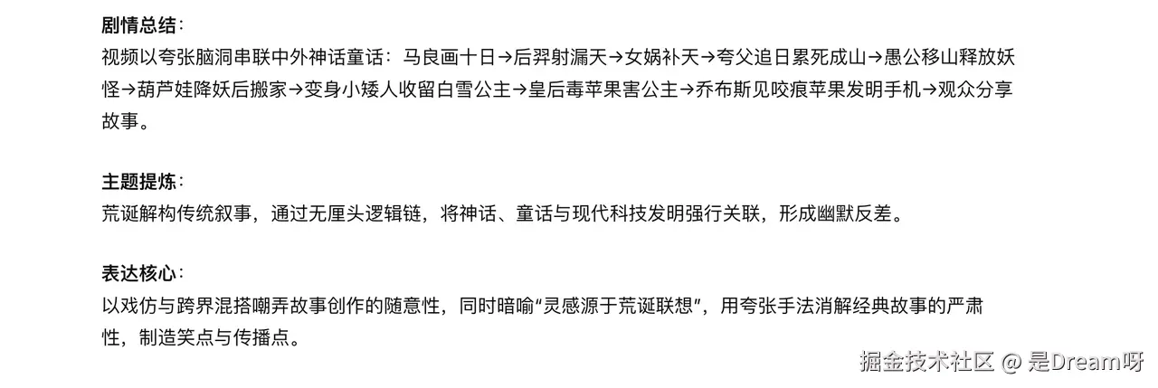 文心 5.0 对这段脑洞剧情的解读精准深刻。它既清晰梳理了跳跃逻辑链,又穿透荒诞表象,提炼出核心主题,更点出 深层内涵,远超浅层剧情复述:编辑