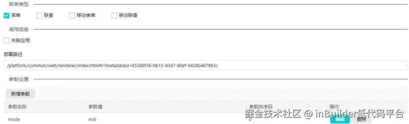 3、部署路径为:/platform/common/web/renderer/index.html#/?metadataId=元数据id,元数据id可以通过运行表单时在地址栏参数中获取。并且可以通过对应Vue表单的【复制部署路径】按钮快捷获取部署路径。