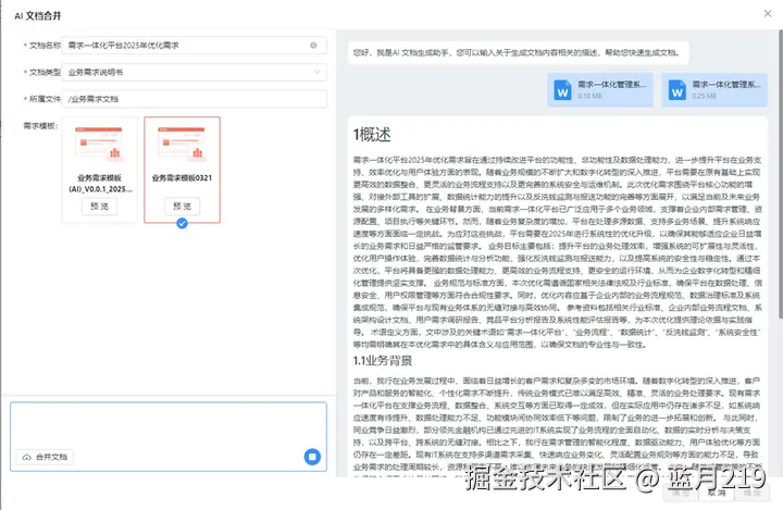 当需求文档分散在多个在线编辑页或本地文件时,AI 合并功能可按指定模板快速整合,解决 “文档杂乱、版本冲突” 问题:
