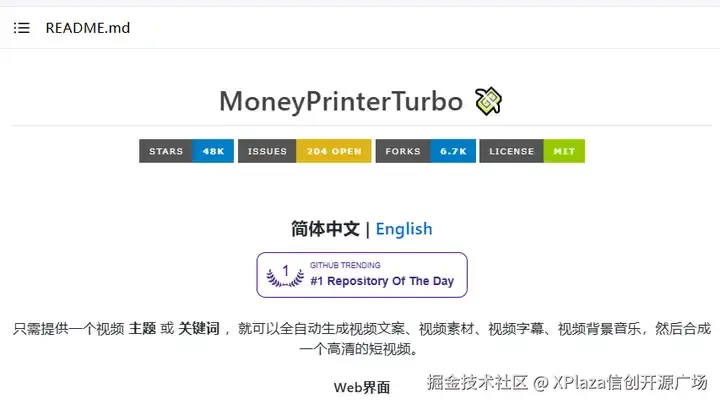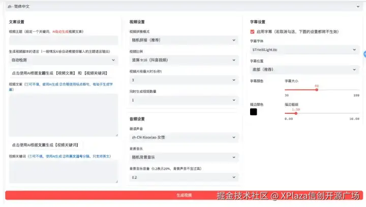 一键生成短视频的 AI 工具。该项目是基于大模型服务的 AI 视频生成工具,只需要提供一个主题或关键字,就可以自动生成高清的短视频。它拥有简单易用的 Web 界面,支持批量生成、设置视频时长和横/竖屏尺寸等功能。