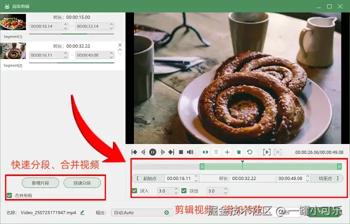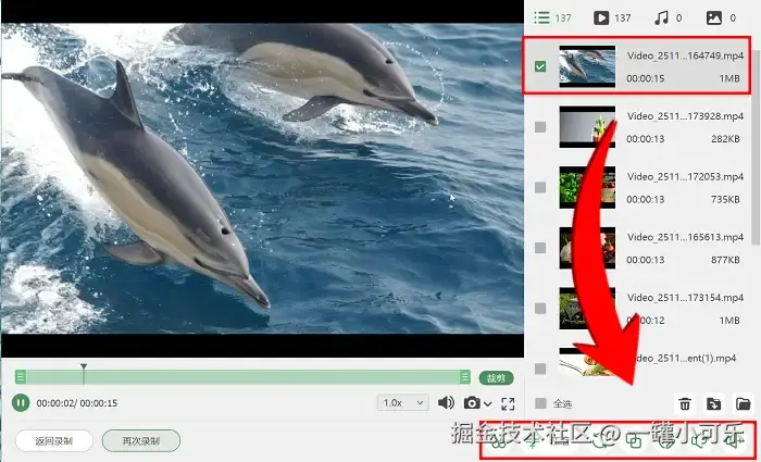 步骤3:录制结束后,你可以通过预览功能查看视频录制效果。如果还需要对视频进行进一步处理,可以在历史记录中进入 “高级剪辑” 模式,然后进行剪辑片段、添加特效等操作。