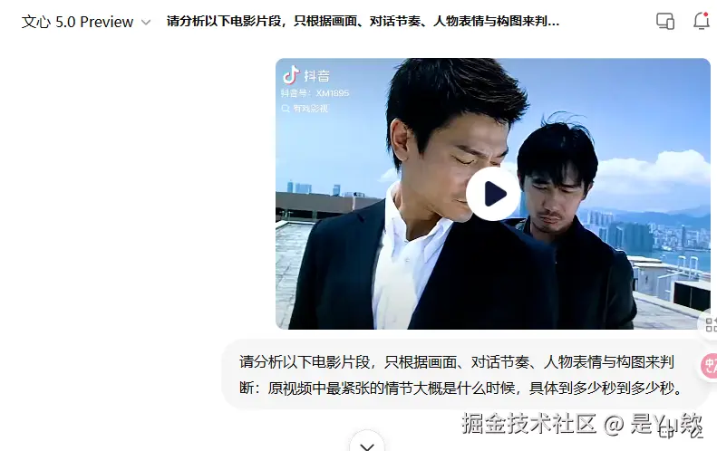 为了验证文心5.0的原生能力,我找了一段极具张力的电影片段(包含激烈的争吵和突然的静默),并设计了一个非常刁钻的Prompt: