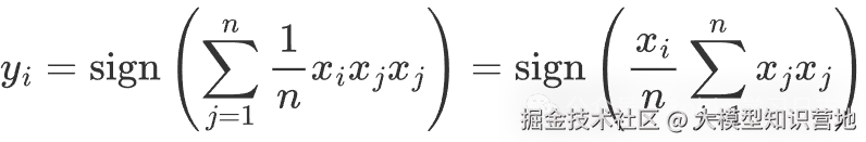 对于第 i 个神经元,我们只看sign函数内部的求和内容: