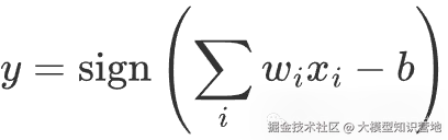 可以把偏置 b 并入权重中,令 w0 = −b,令输入向量增添一个固定值,简化公式为: