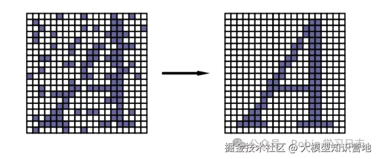 我们人类识别一个物体,并不是在做符号推导,而是在做特征值的累加,比如说这个图案,它在多大程度上像**“A”。“多大程度”可以转化为数值的加减,这也就允许了模糊性推断,即联想**。