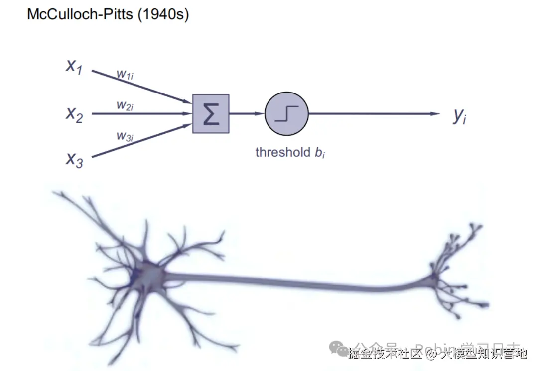 1940年代McCulloch-Pitts提出了神经元的基础数学模型,