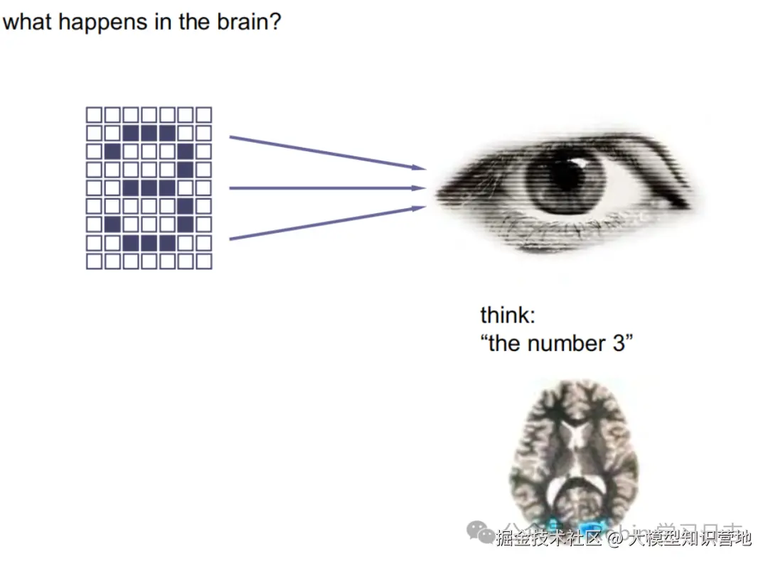 在生命中的某个时刻,通过看数字“3”,你大脑中的神经元可能已经与其他神经元形成了连接。如果一个神经元从其他神经元那里接收到足够的电信号,它就会再次激活,这样你眼睛里的视杆细胞就会与某种东西相连,产生“3”这个概念。