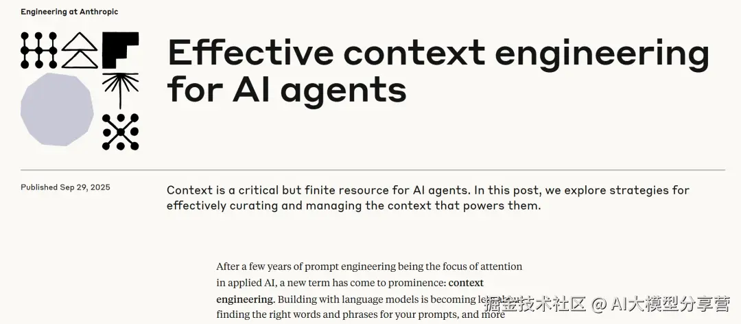 Anthropic给出的定义是:为LLM在推理过程中,策划和维护最优信息集合的一系列策略,简单说: