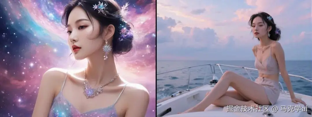 主体驱动生成:能够将特定人物或物体放置到新场景中并保持身份一致性。例如,将一个人物从室内场景转移到海滩、雪山或外太空,同时完美保持人物的面部特征和身份标识。