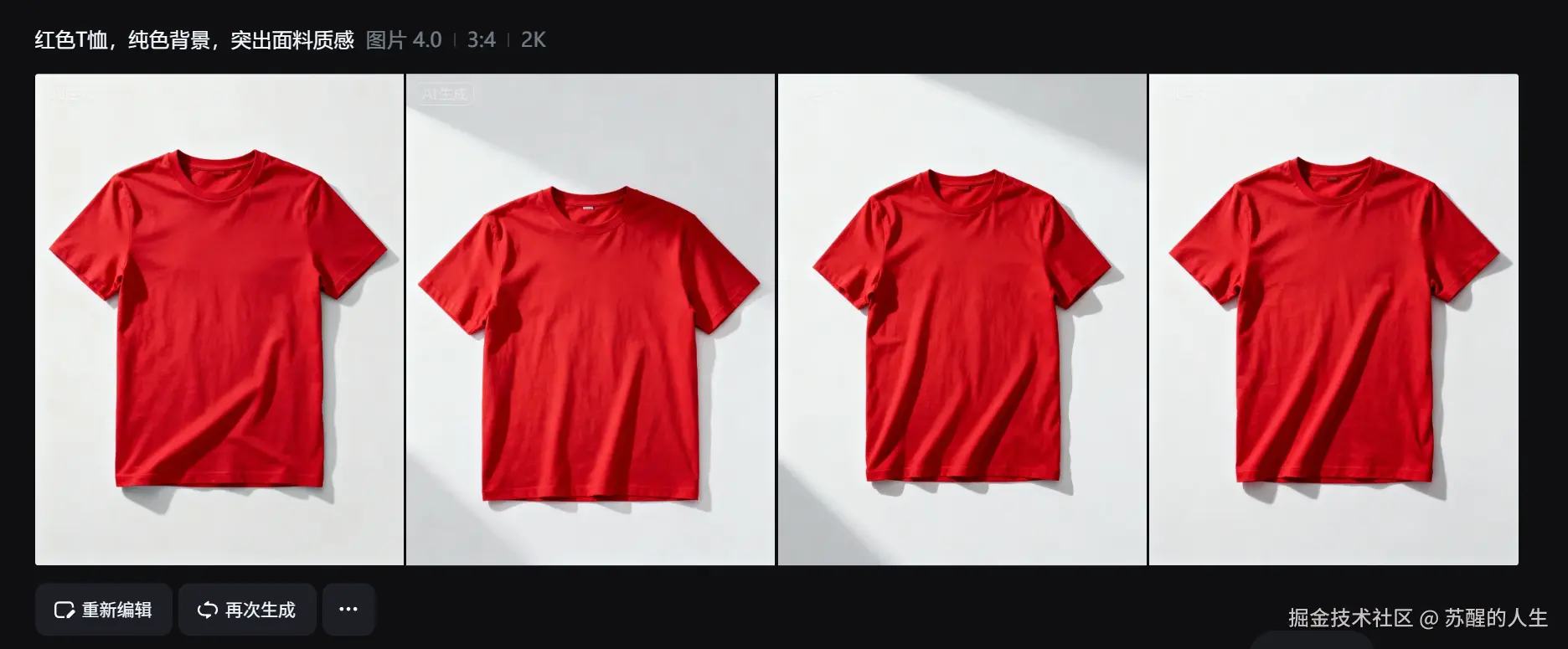 精准指令遵循:即梦AI最大的亮点是自然语言理解能力。无需复杂提示词,用大白话描述需求即可精准生成。例如输入"红色T恤,纯色背景,突出面料质感",即梦AI会自动优化商品光影,智能调整画面细节。