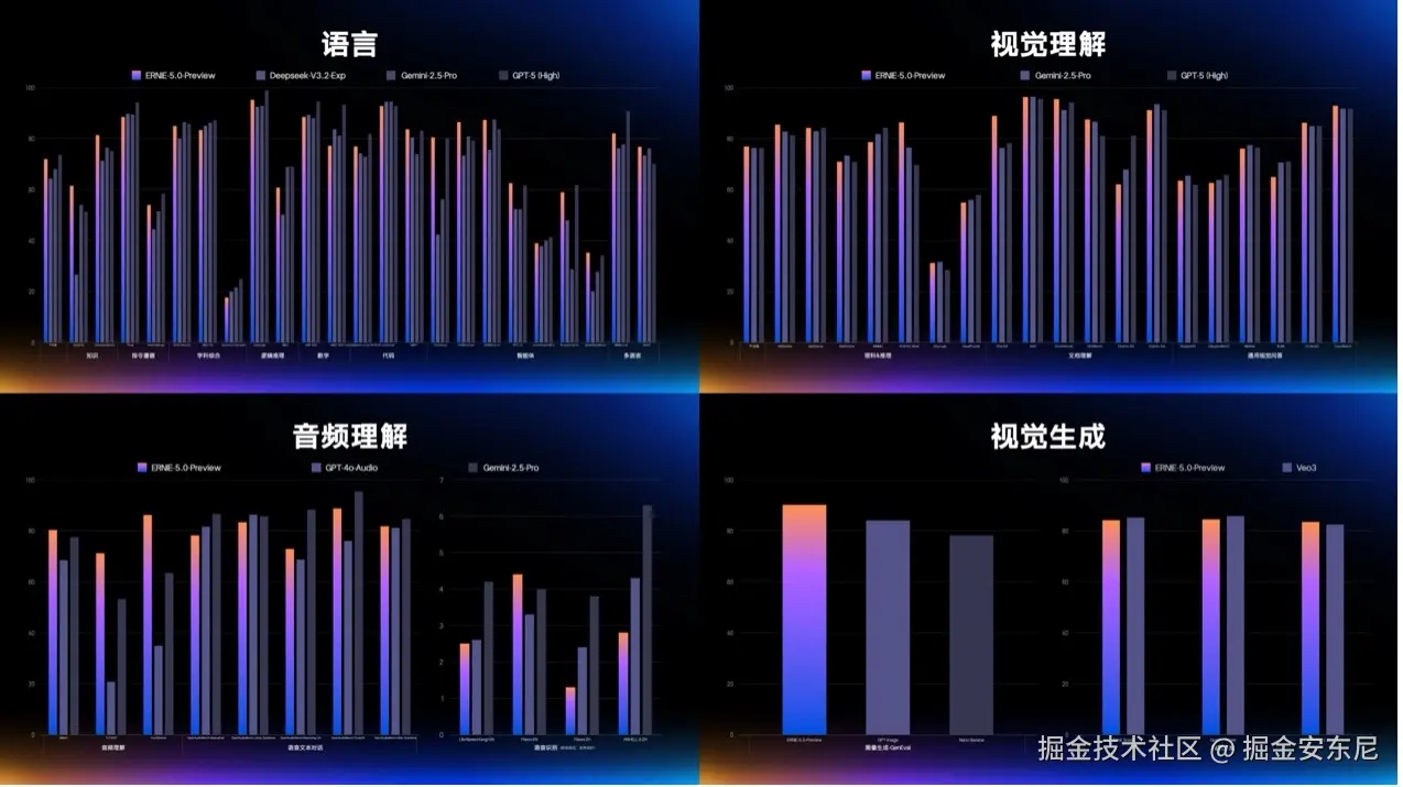 文心 5.0 与行业主流最大的差异只有一句话:它从训练伊始就让语言、图像、视频、音频共存于同一架构。 这件事极难!