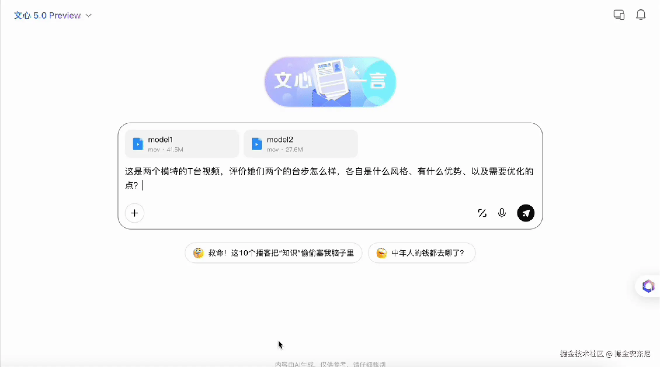拼接式模型常犯一个错误:它只能独立描述两个视频,无法构建“对比空间”。文心 5.0 则能一次生成完整对比结论: