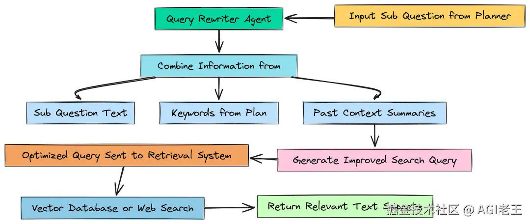 - 计划(Plan):首先,代理将复杂的用户查询分解为结构化的、多步骤的研究计划,并决定每个步骤需要哪种工具(内部文档搜索或网络搜索)。