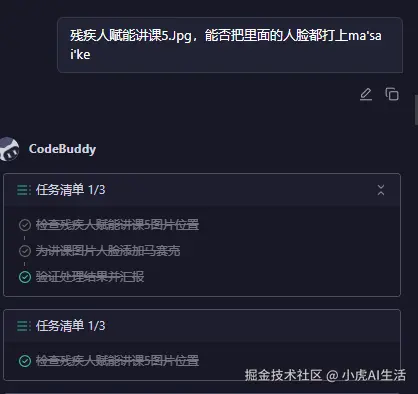 看着十几张集体照,每张都有十几张面孔,手动打码简直是个噩梦😅。就在我头疼时,突然灵光一现:能不能让 CodeBuddy 来帮我完成这个重复性工作呢?