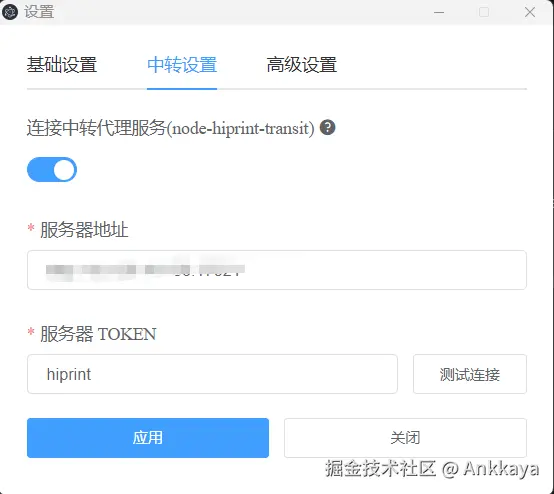 也可以下载项目在本地运行,这个在项目仓库都有介绍,在 nodejs 服务启动成功后,我们可以运行桌面端项目,启动成功后打开应用,在应用设置页面-》中转设置,配置参数,点击测试连接,显示连接成功