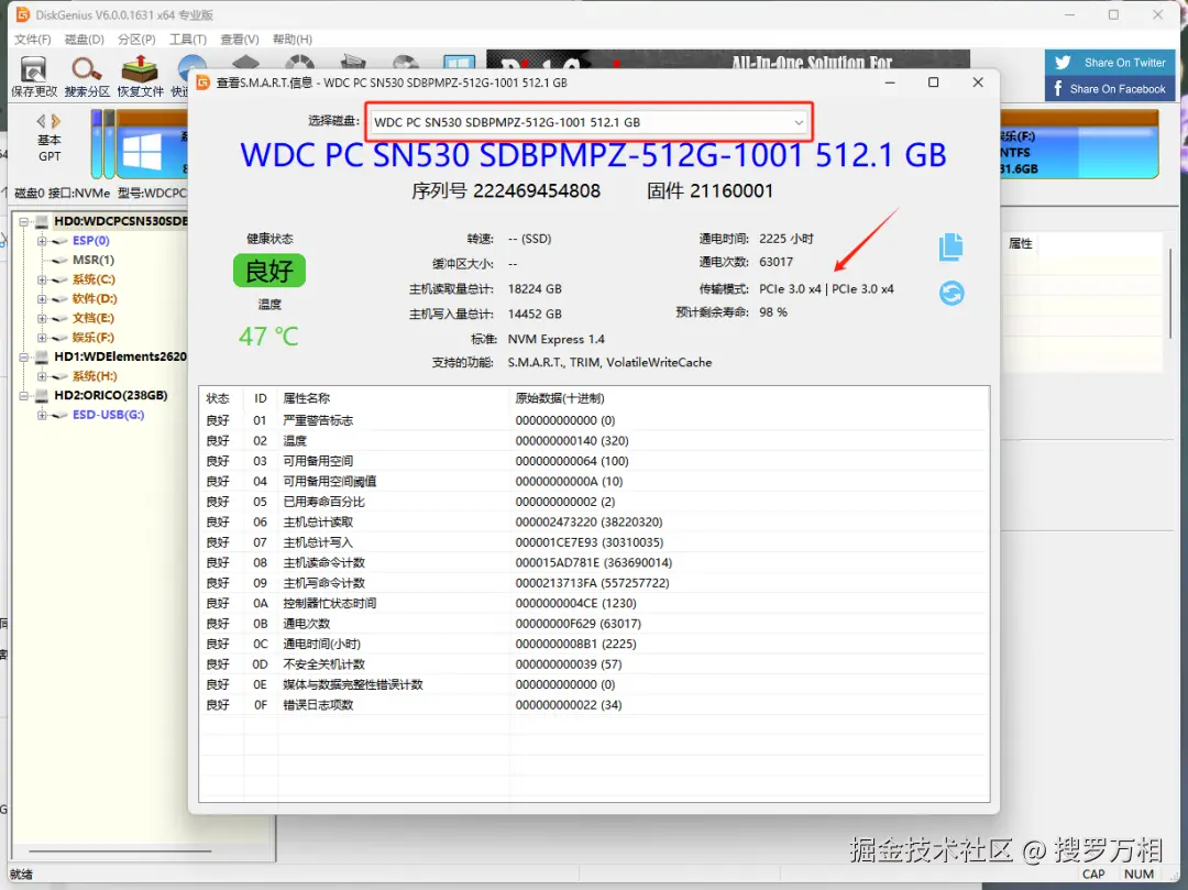 1、笔记本上的500G固态硬盘(西部数据),PCIe3.0x4