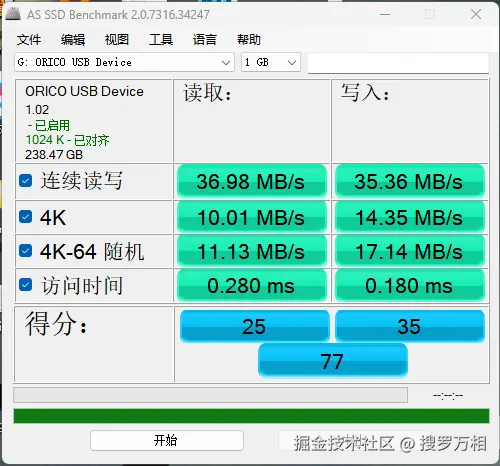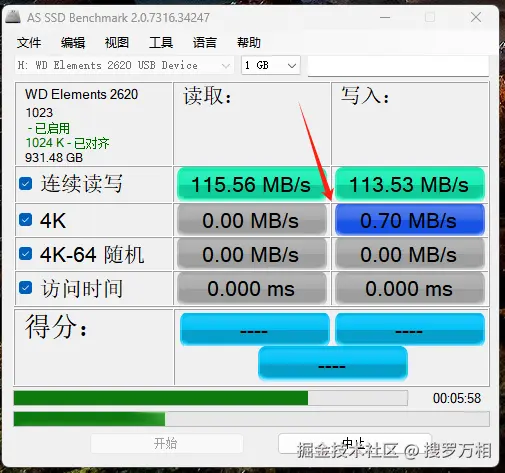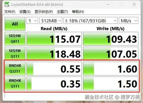 重点:虽然4k读写速度很慢,但是日常使用并不影响。