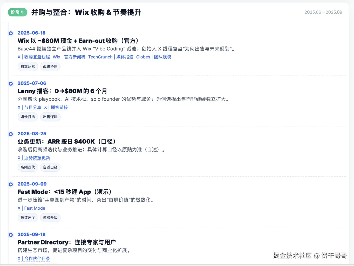 饼干哥哥把他从 0 到被收购的完整链路都搜刮出来,并整理到了一个 html 里