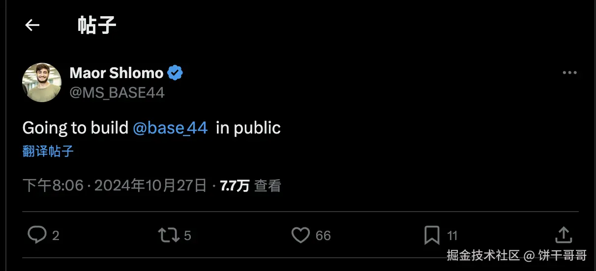 但他并没有一开始就埋头苦干,而是先发了一条推特,向世界宣告我要搭建这个产品,并且以后我会把所有的开发过程都公开,邀请大家一起见证 base44 的成长。