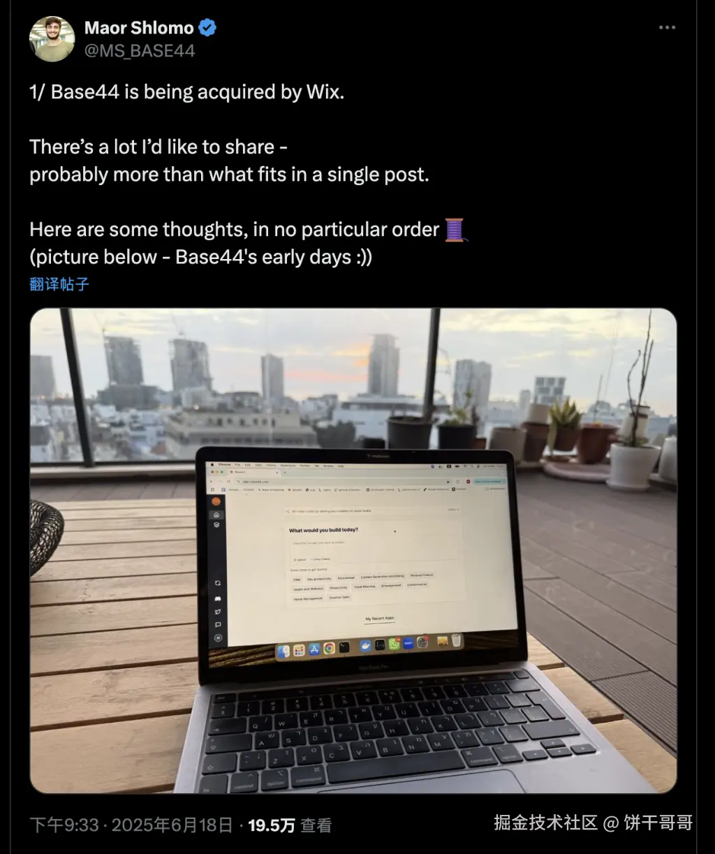 2025年6月18日,互联网巨头Wix宣布以高达8000万美金现金(含Earn-out)全资收购Base44。