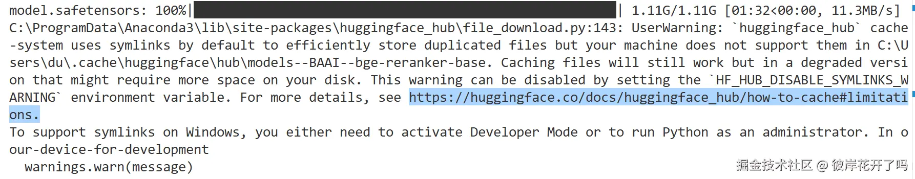 - 使用transformers库加载预训练的BAAI/bge-reranker-base模型和其对应的分词器。
