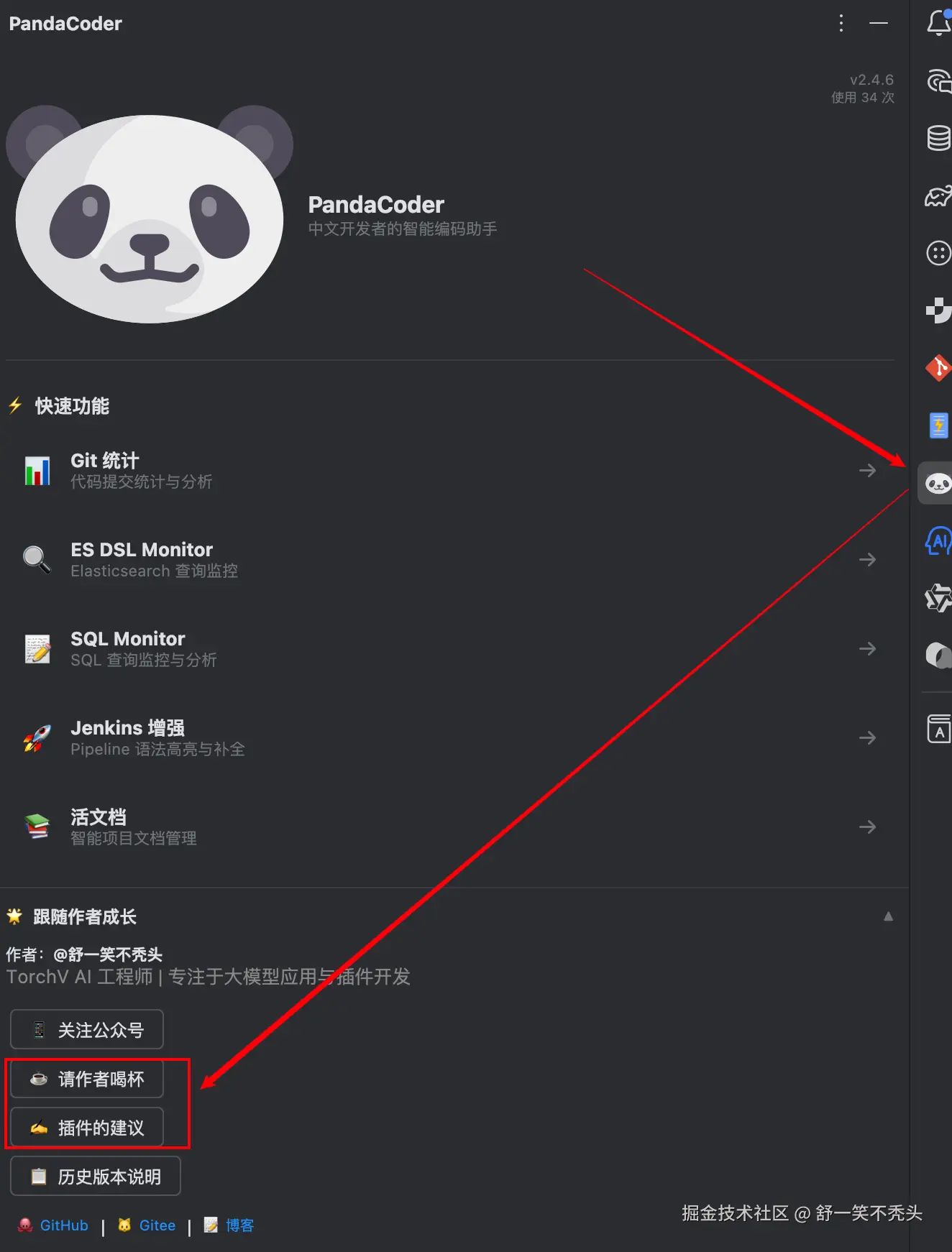 在PandaCoder的设计中,我刻意将"✍️ 插件的建议"功能置于"☕️ 请作者喝杯"之前。这不是偶然,而是基于一个深刻的洞察: