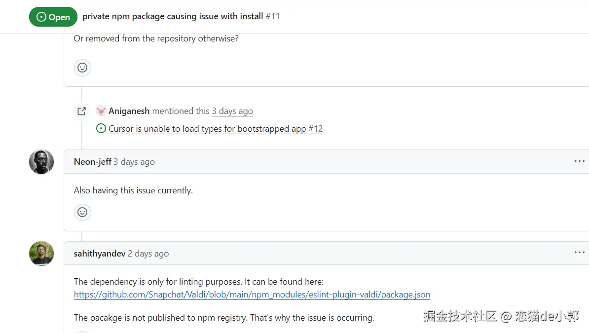 package.json列出了@snapchat/eslint-plugin-vivaldi还是一个私有 NPM 依赖,类似的还有 Bazel 构建脚本失败,问题也是构建脚本正试图使用 SSH 从一个私有 GitHub 仓库(名为@valdi)抓取依赖,可以看出来本次开源还是相对仓促: