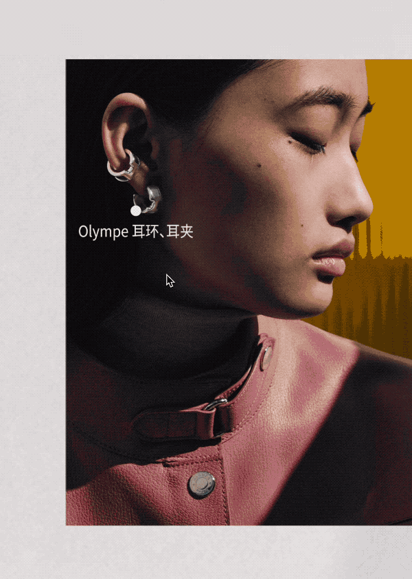 推耳环那篇太会了!顶层做镂空浮层,底层模特图滑动时是非等宽效果,点图还能跳购买链接~E2「底层滑动」+「等分容器滑动」就能实现,既显质感又有互动感!
