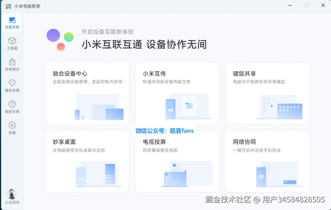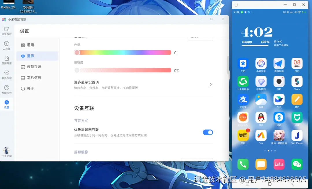 电脑重启开机后,打开桌面上的小米电脑管家,登录小米账号,然后打开小米手机上的「互联互通」功能就能使用了。