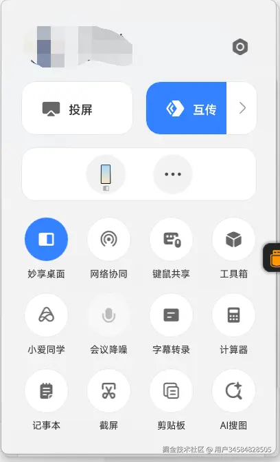 电脑端任务栏会显示「剪贴板」和「控制中心」的图标,打开之后就能看到互联互通相关的功能了。
