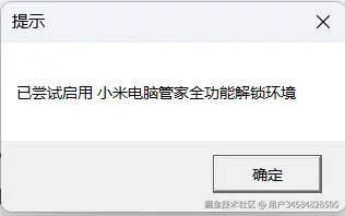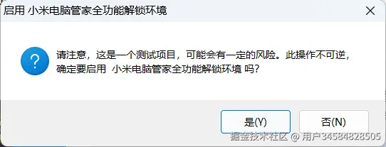 安装完成后,还会有一个「启用小米电脑管家全功能解锁环境」的弹窗,这个根据你自己的使用需求,需要功能丰富点的,就点击「是」来进行安装;