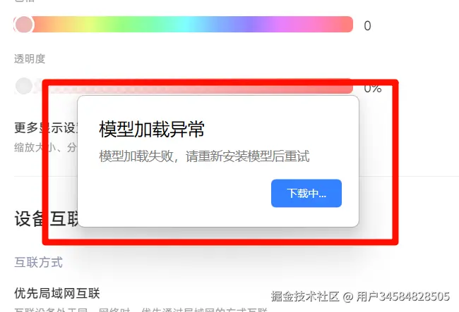 AI搜索功能不可用,会提示模型加载异常。
