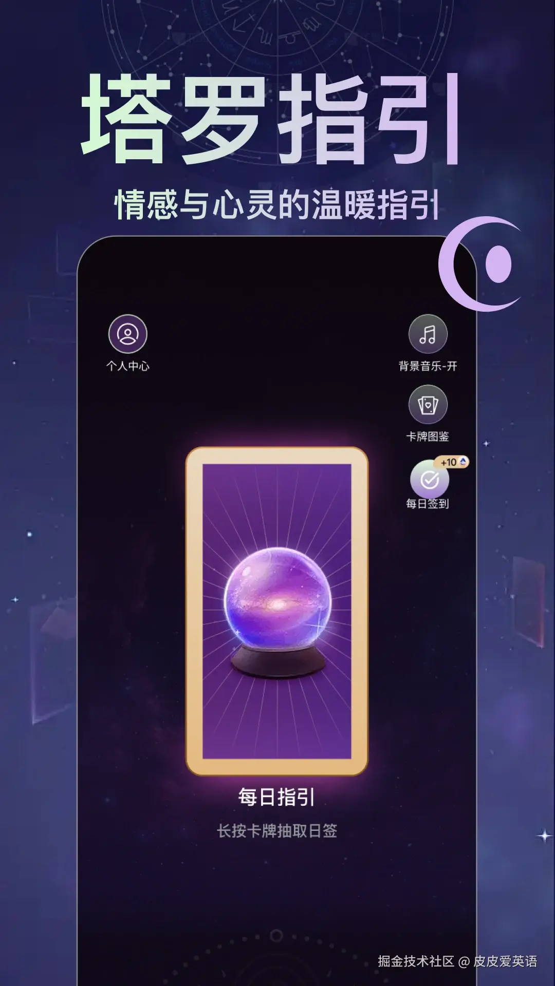 夜航塔罗:专为夜晚使用设计,界面采用低亮度柔光模式,设有“夜读”功能,以慢节奏语音引导使用者进入思绪沉淀的状态,适合睡前或独处时间进行自我整理。