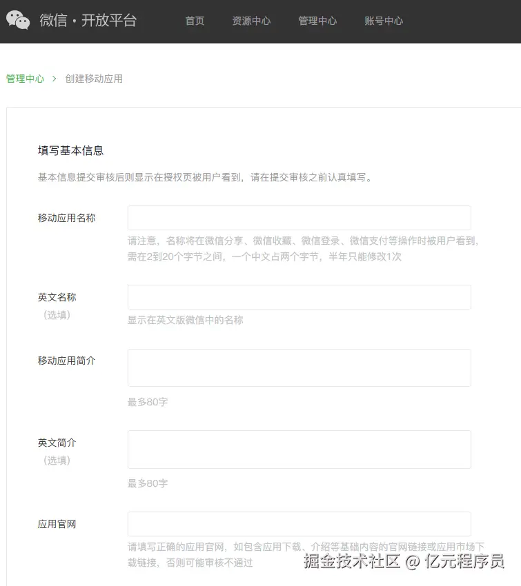 依次填写应用信息,包括: