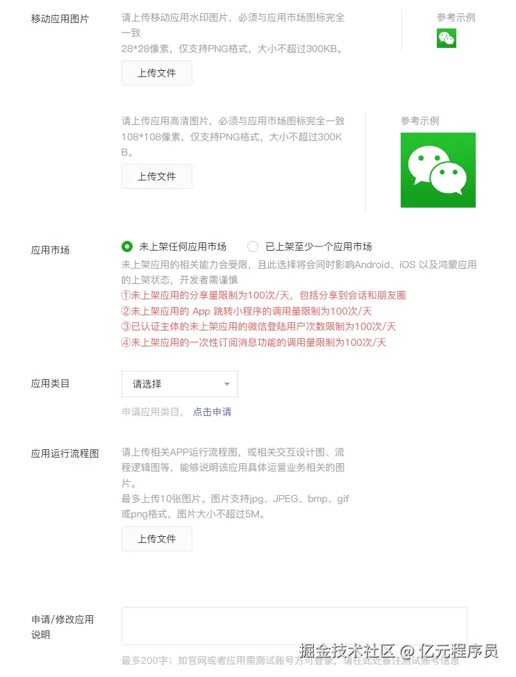 - 申请/修改应用说明:说明,这里可以填接入微信登录。