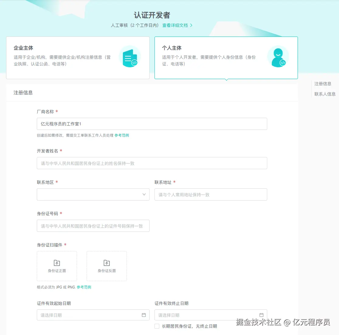 3.填写认证开发者信息