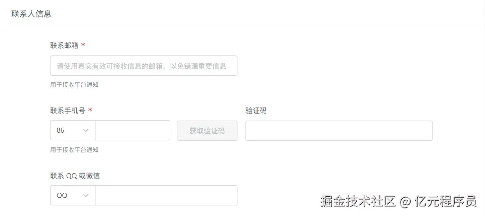 - 联系方式:邮箱和手机号。
