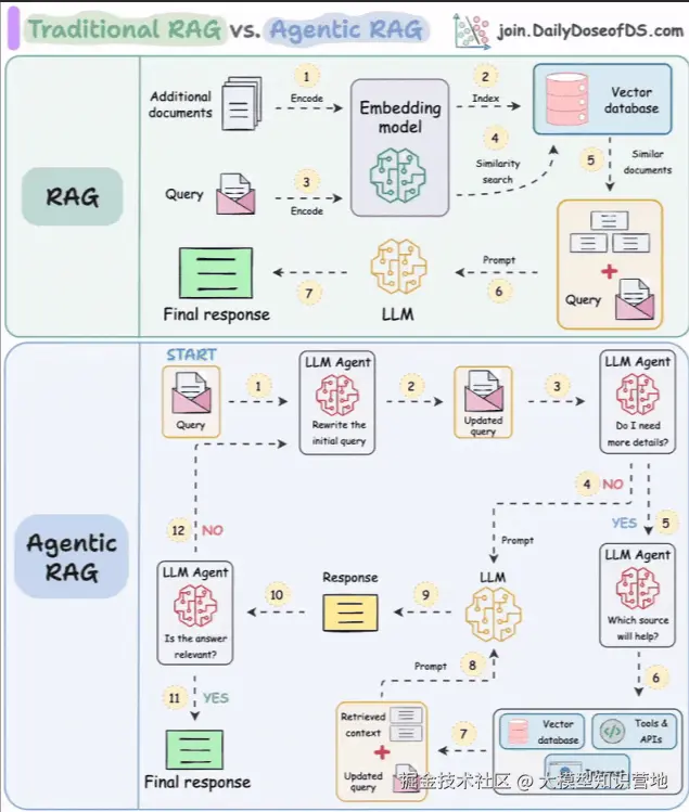 关于RAG事实上分为两种架构,一种是传统的被动式RAG,另一种是主动式RAG;作者在上一篇文章中说过RAG并不是一项具体的技术,而是一种方法论。