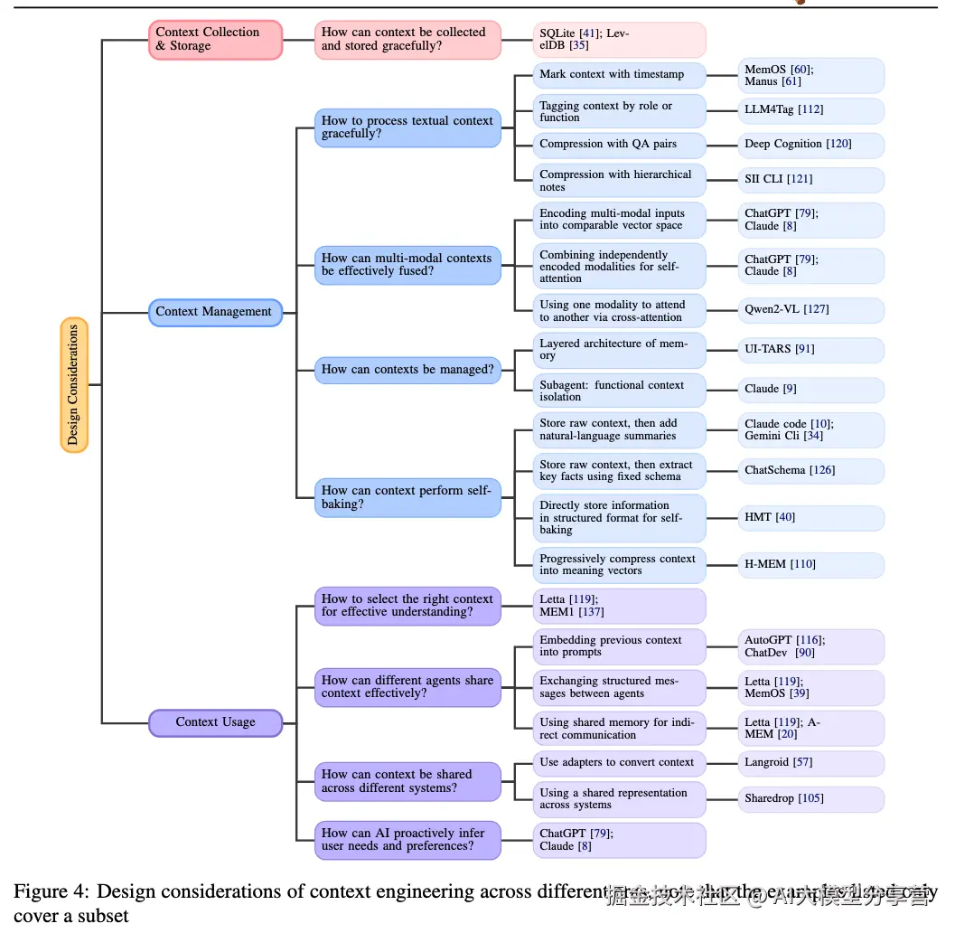 讲完了宏观历史,我们来看看具体的“工程实践”。论文从三个维度系统地梳理了上下文工程的技术要点,这部分对大家做实际项目非常有指导意义。
